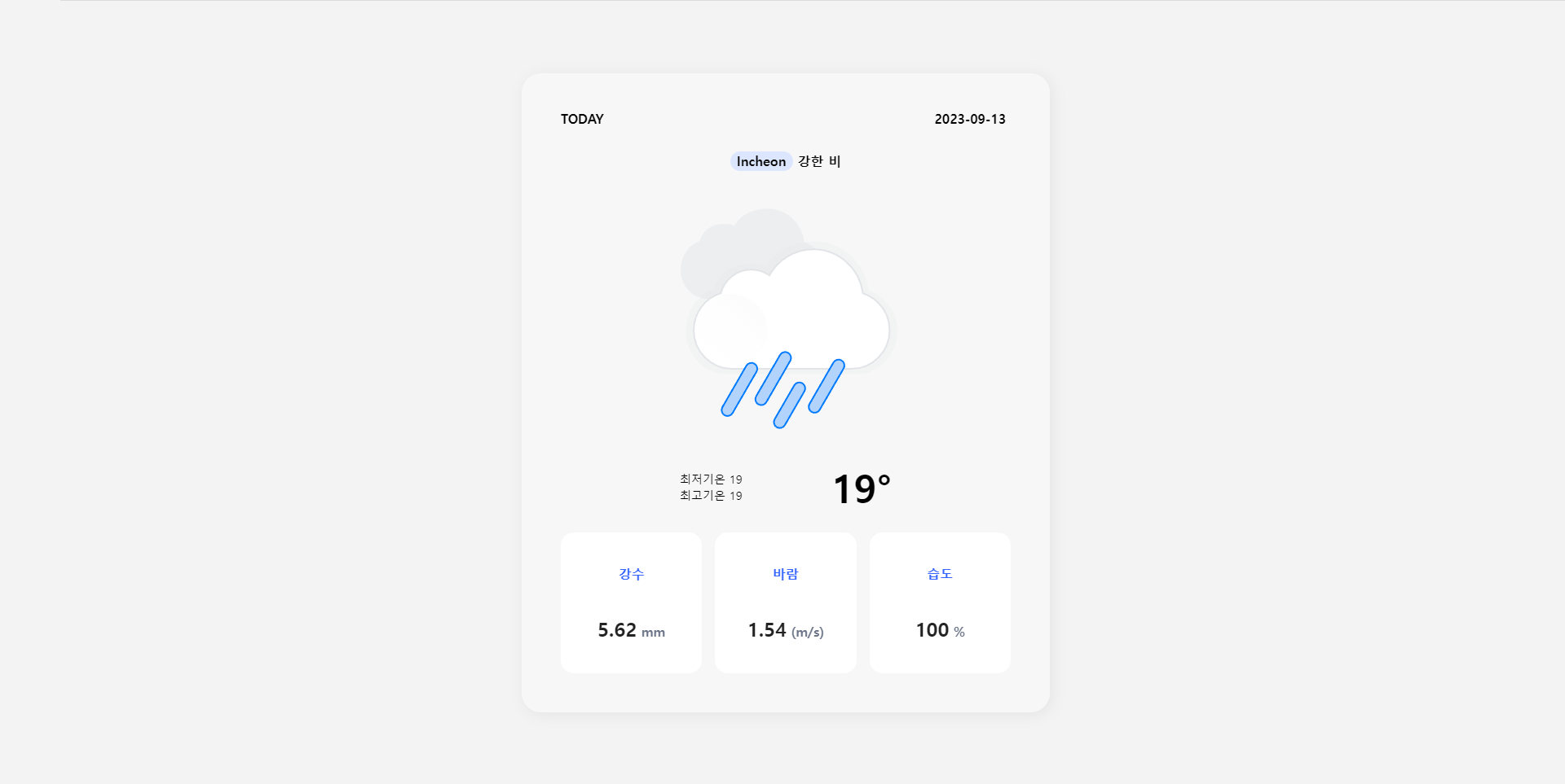 API로 데이터를 받아 화면에 표출하는 건 예전에 궁금해서 봤던 강의가 있었는데 보기만 하고 직접 해보지는 않았었다. 그 후에 회사에서 마지막으로 진행한 프로젝트에서 백엔드에서 만든 API를 받아 그리드에 데이터를 넣어주는 작업을 하다가 집에서 다른 API를 사용한 페이지를 만들어 보고 싶었는데 마침 예전에 만들어둔 날씨 아이콘이 있었고 사람들이 날씨 API를 많이 사용하길래 오늘의 날씨를 알려주는 페이지를 만들게 됐다.