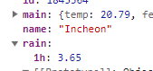 강수량을 출력할 때 data.rain.1h로 출력해 보니까 [object Object]가 떴다. 객체 안의 객체는 다르게 접근해야 한다는 것을 알게 됐다.
